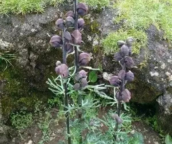 阴山乌头(变种)与伏毛铁棒锤的区别:花较大,上萼片盔形,高1.7-2厘米,有爪,蓝色。