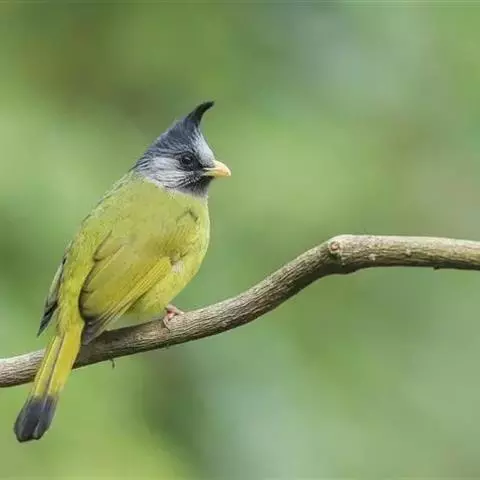 黑冠黄鹎:体长18-21厘米,是一种中等体型偏黄色鹎。整个头、颈、颏、喉黑色,头顶有显著直立的羽冠,…