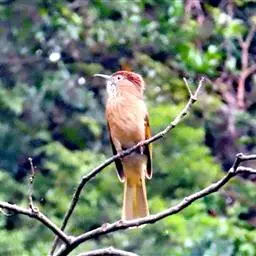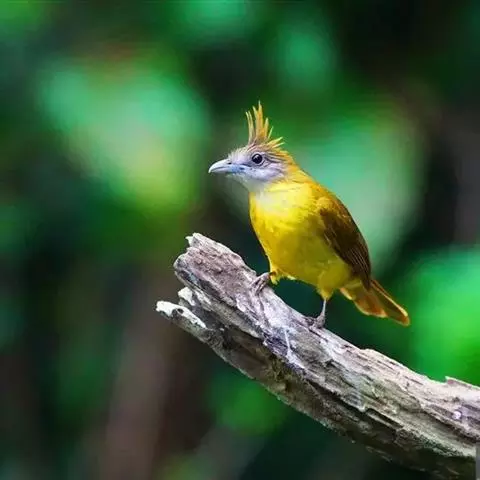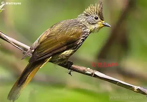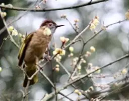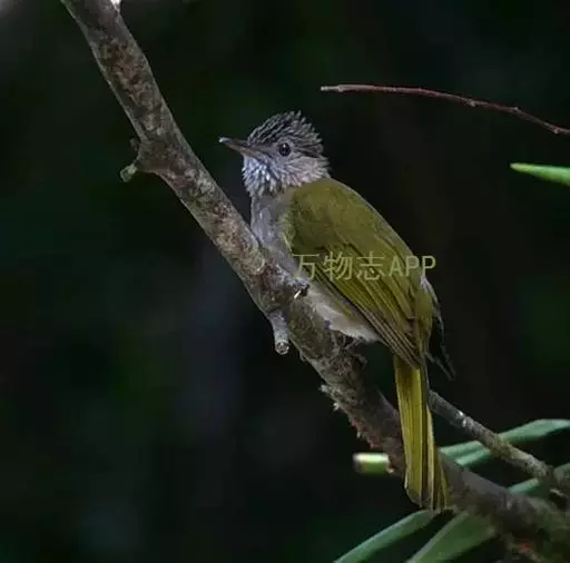 白喉冠鹎:体长20-25厘米。头顶红褐色,有长而细的羽冠、红褐色,头侧灰色。上体橄榄绿黄色,…