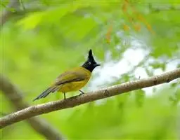 凤头雀嘴鹎:属小型鸟类,体长18-22厘米。嘴粗短、呈象牙色或乳黄色,前额和脸灰色,头顶黑色,…