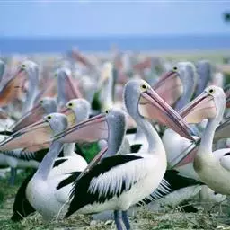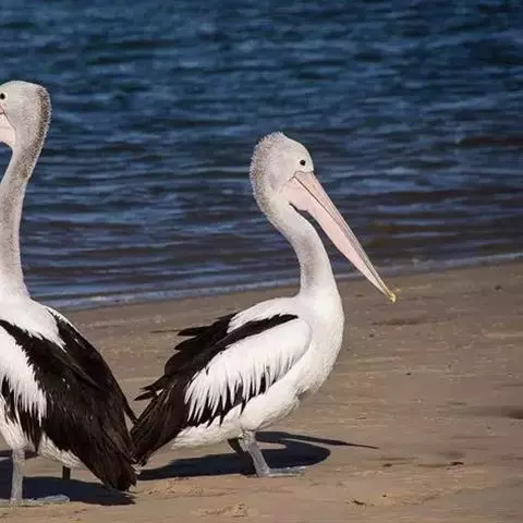 澳大利亚鹈鹕是一种大型涉禽,体重达13千克。生活于沿海及河川、湖泊等处。飞行力强而悠逸,常群飞群栖,…