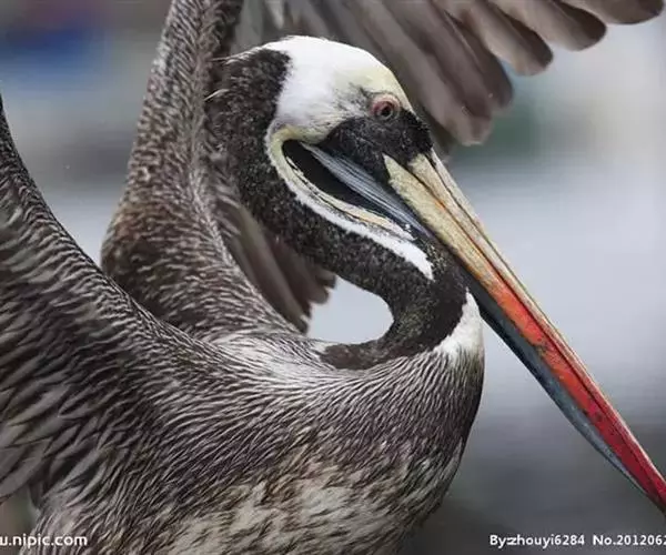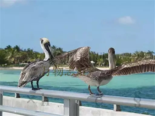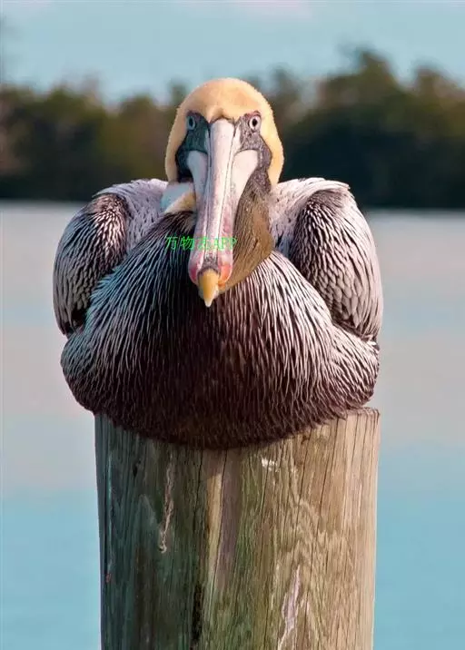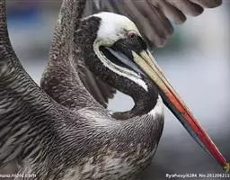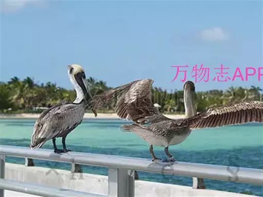 褐鹈鹕:是鹈鹕家族中体型最小的成员。体型粗大,体重6.5-9千克。嘴形宽大直长,上嘴尖端朝下弯曲,…