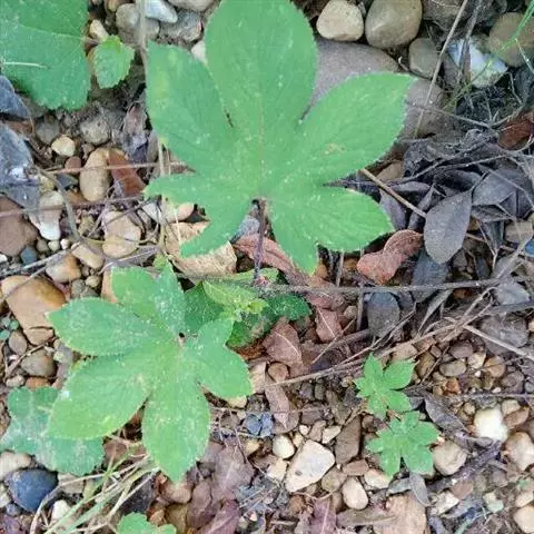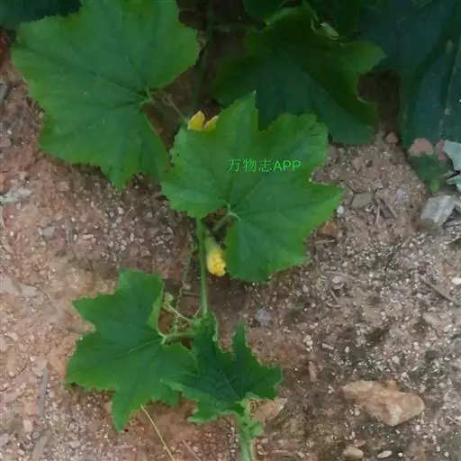 一年生蔓生或架生草本;茎被黄褐色硬毛及长柔毛,有棱沟。叶柄粗壮,长5-20厘米,被黄褐色的硬毛和长柔毛;叶片肾状近圆形,宽15-30厘米,5-7浅裂或有时中裂,裂片宽三角形或卵形,先端急尖,边缘有小齿,基部深心形,弯缺张开,近圆形,深、宽均为2.5-3.5厘米,表面深绿色,稍粗糙,有疏柔毛,老后渐脱落,变近无毛;背面粗糙,灰白色,有粗硬毛,叶脉在叶背面稍隆起,密被毛。卷须2-3歧,被粗硬毛和长柔毛。