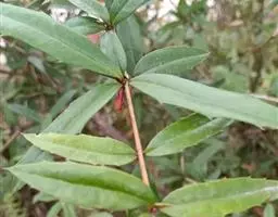 细叶小檗(学名:Berberis poiretii Schneid.)是小檗科,小檗属落叶灌木,高可达2米。老枝灰黄色,幼枝紫褐色,茎刺缺如或单一,有时三分叉,叶纸质,倒披针形至狭倒披针形,偶披针状匙形,穗状总状花序具花,花梗无毛;花黄色;苞片条形,外萼片椭圆形或长圆状卵形,内萼片长圆状椭圆形,花瓣倒卵形或椭圆形,浆果长圆形,红色,花期5-6月,果期7-9月。2n=28。