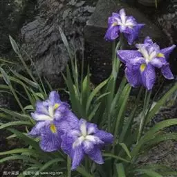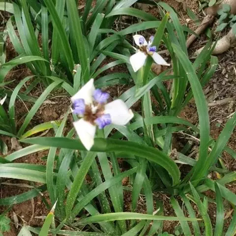 双色野鸢尾为多年生草本植物,叶子呈剑状淡绿色。…