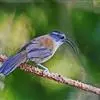 剑嘴鹛:中型鸟类,体长21-22厘米。嘴特别细长而向下弯曲,头顶和头侧烟灰色具长而窄的白色眉纹,…