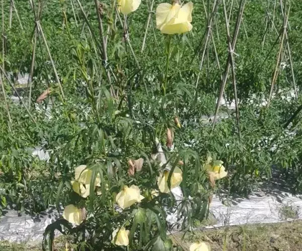 聚伞花序腋生,常1(-3)花;苞片羽状细裂;花钟状下垂,直径1-1.5厘米;萼片4枚,淡黄色,长方椭圆形或狭卵形,长1.5-2厘米,宽5-8毫米,两面近于无毛,外面仅边缘上密被乳白色绒毛,内面有三条直的中脉能见;雄蕊长为萼片之半,花丝扁平,线形或披针形,中部宽达1.5毫米,两端渐窄,中上部被稀疏柔毛,其余无毛;子房扁平,卵形,被短柔毛,花柱被绢状毛。