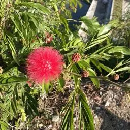 朱缨花,豆科朱缨花属的多年生木本植物,枝条扩展,小枝褐色;叶片呈卵状披针形;头状花序腋生,…
