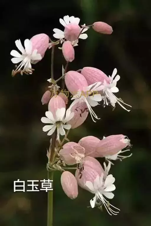 一年生草本,高15-45厘米,全株被柔毛。茎单生,直立或上升,不分枝或分枝 蝇子草 ,被短柔毛和腺毛。叶片长圆状匙形或披针形,长1.5-3厘米,宽5-10毫米,顶端圆或钝,有时急尖,两面被柔毛和腺毛。单歧式总状花序;花梗长1-5毫米;苞片披针形,草质,长达10毫米;花萼卵形,长约8毫米,直径约2毫米,被稀疏长柔毛和腺毛,纵脉顶端多少连结,萼齿线状披针形,长约2毫米,顶端急尖,被腺毛;雌雄蕊柄几无;花瓣淡红色至白色,爪倒披针形,无毛,无耳,瓣片露出花萼,卵形或倒卵形,全缘,有时微凹缺;副花冠片小,线状披针形;雄蕊不外露或微外露,花丝下部具缘毛。蒴果卵形,长6-7毫米,比宿存萼微短或近等长;种子肾形,两侧耳状凹,长约1毫米,暗褐色。2n=24。花期5-6月,果期6-7月。