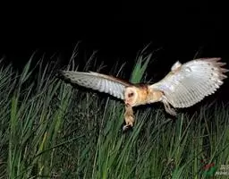 栖息于山麓草灌丛中,以鼠类、蛙、蛇、鸟卵等为食。叫声响亮刺耳。白天,草鸮躲在树林里养精蓄锐,夜间却非常活跃。草鸮的身体结构和功能都适应于黑夜捕捉老鼠。第一,草鸮的眼睛内的视锥细胞密度是人眼的八倍。加上草鸮眼睛的瞳孔很大,感光能力强,所以草鸮能看清黑夜里活动的老鼠。第二,草鸮有一对听力极强的大耳朵。不论在空中飞翔,还是在树枝上“守株待鼠”,老鼠在地面活动时发出的微弱响声,都能听得一清二楚。第三,草鸮的头部可以自由地旋转270度,也就扩大了视觉器官和听觉器官的“扫描探测”范围。第四,草鸮全身羽毛尤其是翅膀上的羽毛特别柔软蓬松。飞行的时候无声无息,能出鼠不意而捕杀之。加上它有钩子般的趾爪和利喙,捕杀老鼠是百发百中。