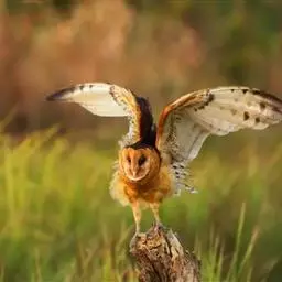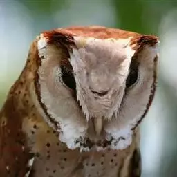 栗鸮:是鸟纲、草鸮科的猫头鹰。体长约29厘米,体重311-360克。是一种中等体型的红褐色鸮。…