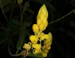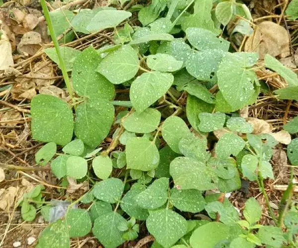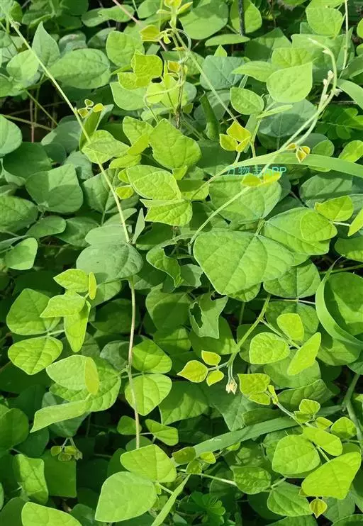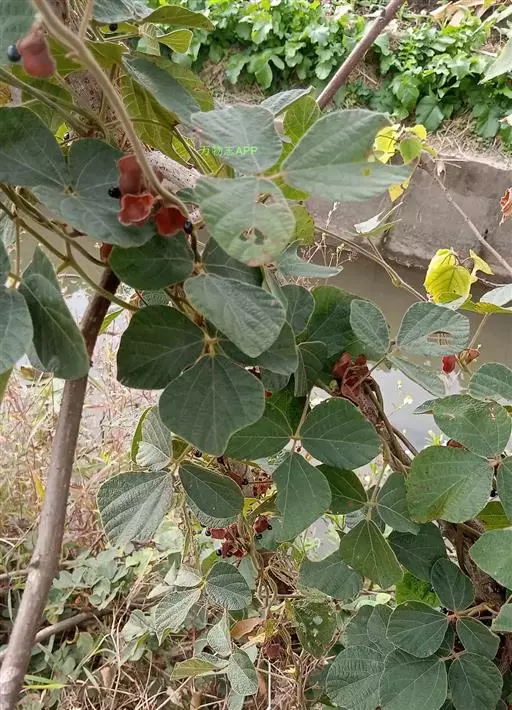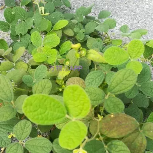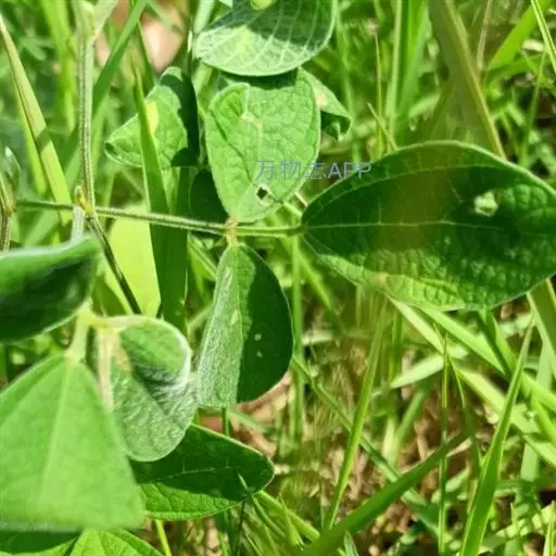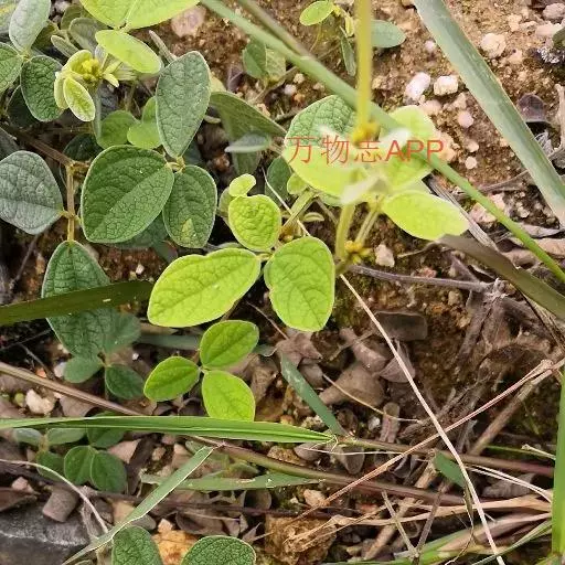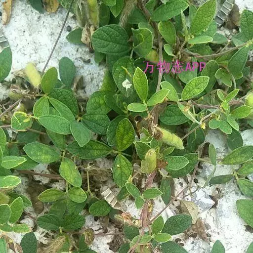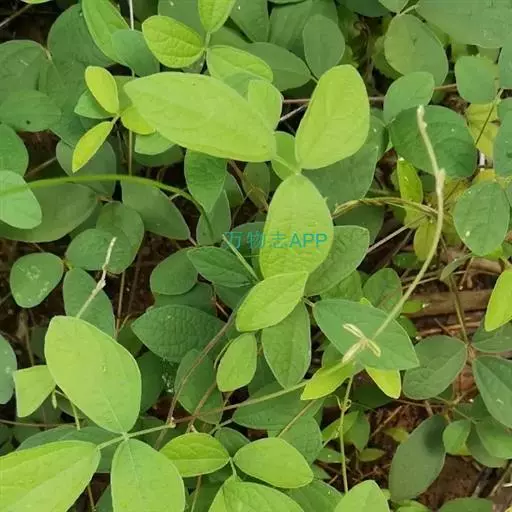 多年生缠绕草本。各部密被淡黄色柔毛。茎蔓长。3出复叶,顶生小叶近于圆形,长2.5~6cm,宽2.5~5.5cm,先端急尖或短渐尖;侧生小叶斜阔卵形,或斜阔椭圆形,长2~6cm,宽1.5~2.5cm,先端急尖,基部圆形;叶片纸质,上面疏被短柔毛,背面密被长柔毛和橘黄色透明腺点;托叶线状披针形,不脱落。总状花序腋生,花10余朵;长约7mm;花萼钟状,5裂;花冠黄色,龙骨瓣有长喙;雄蕊10,二体,花药1室;子房上位,胚珠2,花柱长,基部弯曲,被毛,柱头头状。荚果短,长圆形,红紫色,长约1.5cm,阔约9mm;种子1~2粒,黑色,有光泽。花期5~9月,果期7~10月。