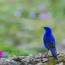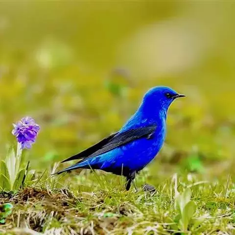 蓝大翅鸲是鹟科、大翅鸲属小型鸟类,体长19-21厘米。两翅尖长。雄鸟通体鲜紫蓝色具金属光泽。…