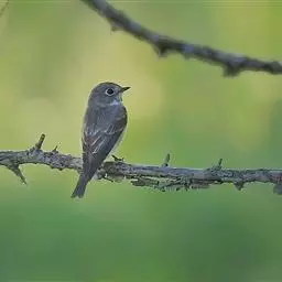 乌鹟:体重9-15克,体长12-14厘米。是一种体型略小的烟灰色鹟。上体深灰,翼上具不明显皮黄色斑纹,…