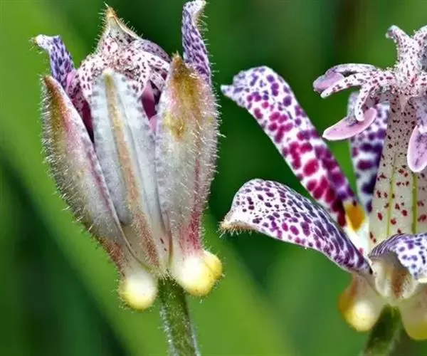 植株高可达1米。茎上部疏生或密生短的糙毛。叶卵状椭圆形、矩圆形至矩圆状披针形,长(6-)8-16(-19)厘米,宽(4-)6-9(-10)厘米,先端渐尖或急尖,两面疏生短糙伏毛,基部心形抱茎或圆形而近无柄,边缘具短糙毛。二歧聚伞花序顶生或生于上部叶腋,花序轴和花梗生有淡褐色短糙毛,并间生有细腺毛;花梗长1.4-2.5(-3)厘米;苞片很小;花疏散;花被片绿白色或白色,内面具多数紫红色斑点,卵状椭圆形至披针形,长约1.5-2厘米,开放后自中下部向下反折;外轮3片较内轮为宽,在基部向下延伸而呈囊状;雄蕊约等长于花被片,花丝中上部向外弯垂,具紫色斑点;柱头稍微高出雄蕊或有时近等高,3裂;裂片长1-1.5厘米,每裂片上端又二深裂,小裂片长约5毫米,密生腺毛。蒴果直立,长约2-3厘米。花果期6-10月。
