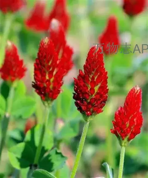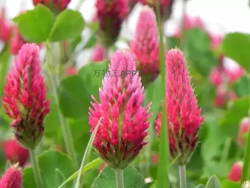 绛车轴草是豆科车轴草属的一年生草本植物。绛车轴草茎直立或上升,粗壮,被长柔毛,具纵棱;掌状三出复叶,…