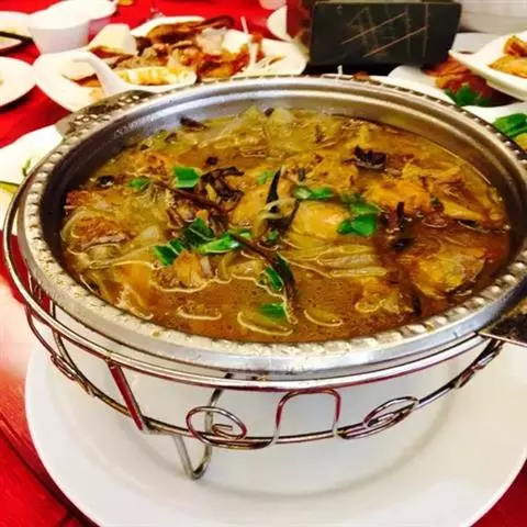 小鸡炖蘑菇是一道东北炖菜。通常是用干蘑菇、鸡肉和粉条一同炖制而成。榛蘑可以衬托出鸡肉的鲜香,粉条滑…