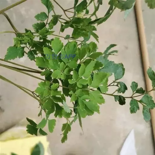 基生叶具长柄,叶片近三角形,长5-9厘米,上面绿色,下面苍白色,1-2回羽状全裂,一羽片2-3对,具短柄,二回羽片近无柄,倒卵圆形,羽状分裂,裂片狭卵圆形,顶端钝,近具短尖。茎生叶与基生叶同形。