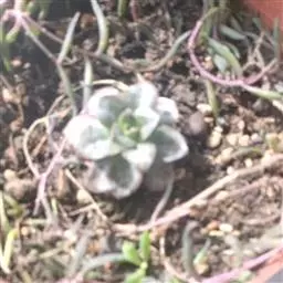 拍摄者:Emmanuelle Aubé 叶呈卵圆披针状,叶端收尖稍向内凹,被白粉,一般浅灰绿或浅灰蓝;光照充足、温差大时变为较鲜艳的紫粉色(通常在深秋或冬季时颜色最为鲜艳)。叶片较多,排列呈致密的莲座状,直径可达20。多年生植株密集群生,高10-12厘米,每个莲座直径可达15-20厘米。花期为春季,穗状花序,钟形花,先端五裂;花瓣内侧黄色,外侧粉色。