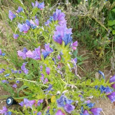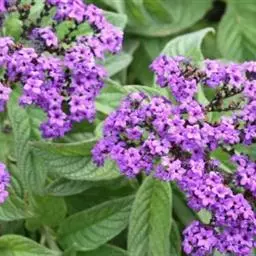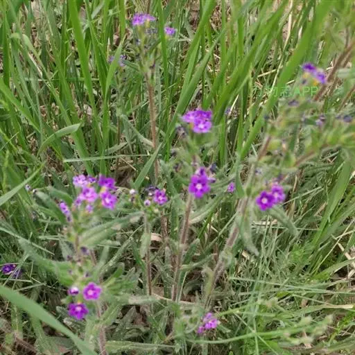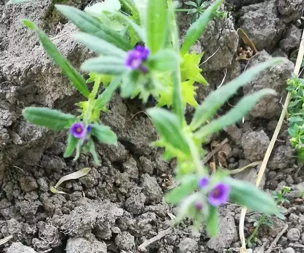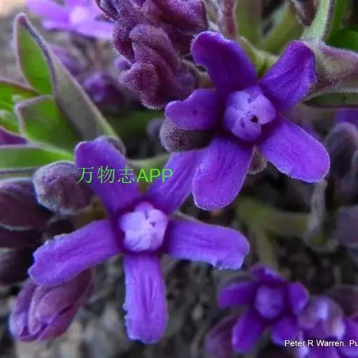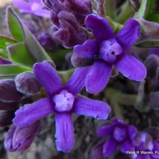 多年生草本植物,高30-60cm,叶披针形,有毛,基生叶丛生。疏生一侧螺旋状聚伞花序;花鲜紫色至紫色,花小,径约6MM。