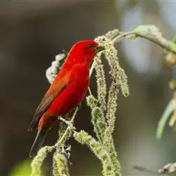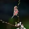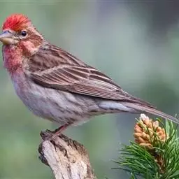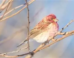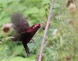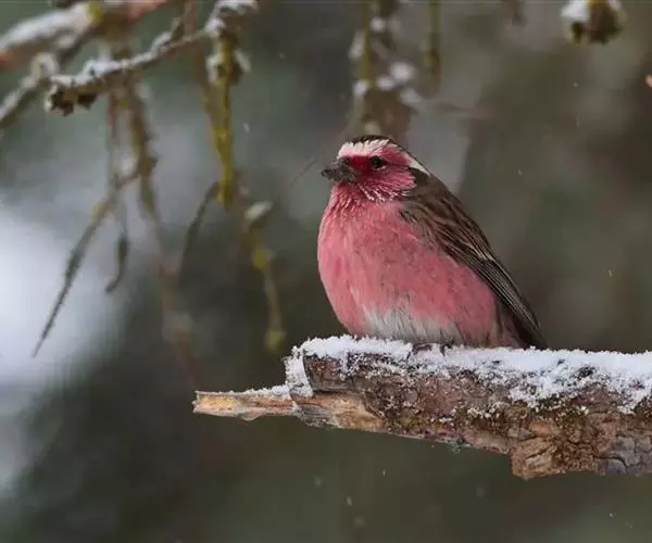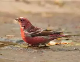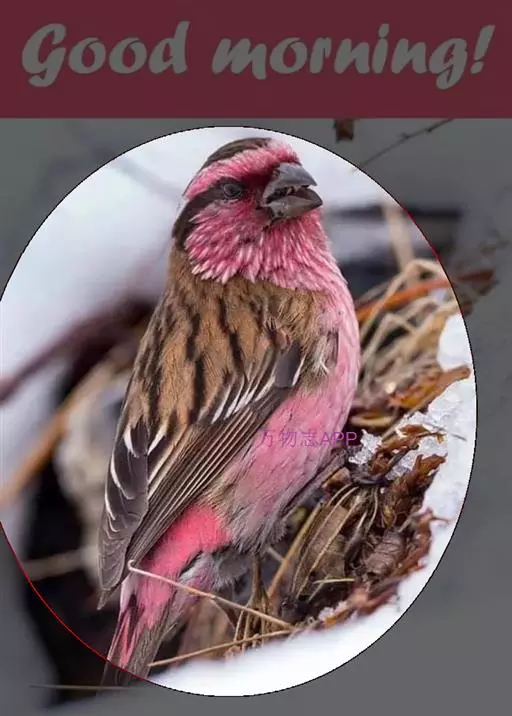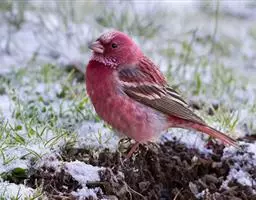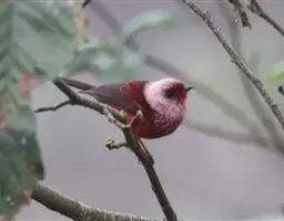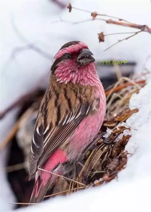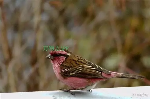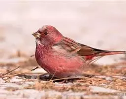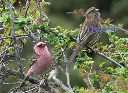 藏朱雀:全长约17-18厘米。雄鸟头部深红色具光辉,喉部暗红色具白色点斑;背部灰白色,各羽具玫瑰红…