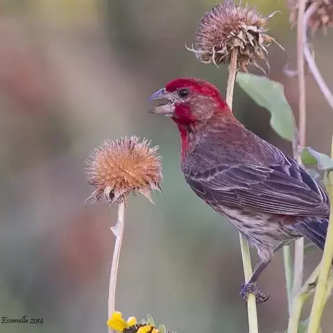 叫声:鸣声似赤胸朱顶雀的唧叫。常有的叫声为偏高的嘁喳声deep-deep, deep-de-de-de-de或快速的尖叫 pupupipipipi。