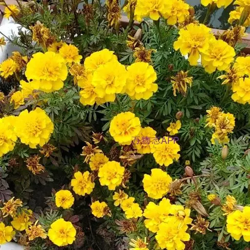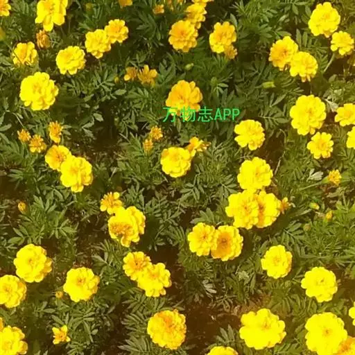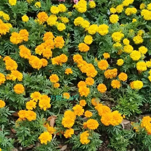 万寿菊是一种常见的园林绿化花卉,其花大、花期长,常用来点缀花坛、广场、布置花丛、花境和培植花篱。中、矮生品种适宜作花坛、花径、花丛材料,也可作盆栽;植株较高的品种可作为背景材料或切花。