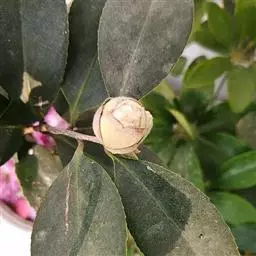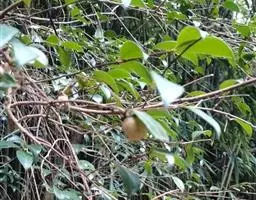 蒴果球形或卵圆形,直径2-4厘米,3室或1室,3爿或2爿裂开,每室有种子1粒或2粒,果爿厚3-5毫米,木质,中轴粗厚;苞片及萼片脱落后留下的果柄长3-5毫米,粗大,有环状短节。花期冬春间。