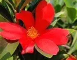 滇山茶:灌木至小乔木,有时高达15米,嫩枝无毛。叶阔椭圆形,上面干后深绿色,发亮,下面深褐色,无毛,…