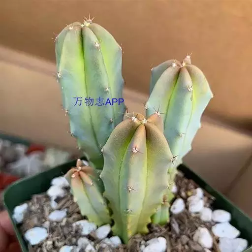 龙神木,又称蓝爱神木。原产墨西哥中部为肉质植物、也称多浆植物,植株呈多分枝的乔木状,在原产地可长到3~4米高,柱状肉质茎粗6~10厘米,具5~6棱,刺座生于棱缘,排列稀疏,周刺5枚,长约0.2厘米,初为红褐色,后为黑褐色;黑色中刺1枚,匕首形,长达7厘米,但栽培中幼株的中刺往往不发育。茎表皮光滑,蓝绿色,新长出的茎被有白粉。而老茎因风吹雨淋,白粉会逐渐脱落,使表皮呈蓝灰色。花朵直径2.5~3.5厘米,白色中稍带绿色,花期夏季,昼开夜闭,具芳香。浆果蓝色。
