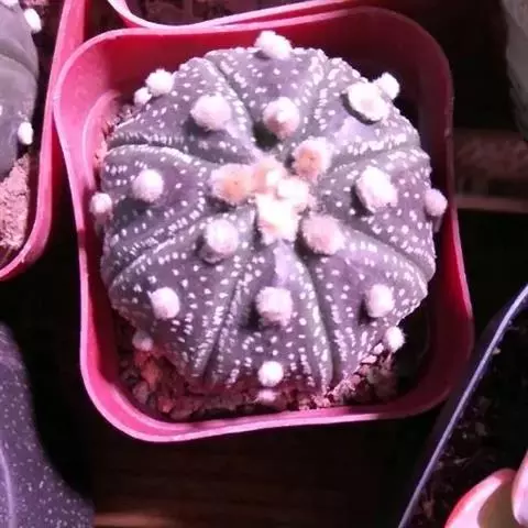 栽培中不要用手触摸植株,特别是新茎,以防白粉脱落,留下深浅不一的痕迹。幼株最好能数株同栽于一盆,这样培育出的植株比较粗壮。每年早春换盆一次,盆土要求疏松肥沃,富含钙质,并具有良好的排水性。可用腐叶土、园土、粗砂或蛭石各一份的混合土栽种,并掺入适量的骨粉、贝壳粉等石灰质材料,以及少量腐熟的鸡、牛粪作基肥。