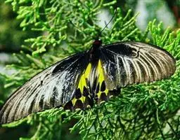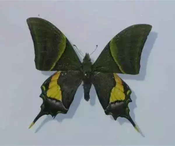 喙凤蝶身体、翅面大部分翠绿色,雌雄异型。雄蝶前翅基半部色深,以外侧黄绿色而内侧黑色的横纹分界,是观赏的佳品。
