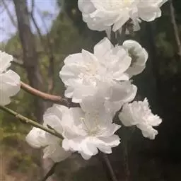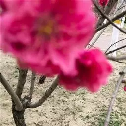 属于观赏桃花类的半重瓣及重瓣品种,统称为碧桃。华东地区碧桃花期是3月~4月,花朵丰腴,色彩鲜艳丰富,花型多。常见的品种有红花绿叶碧桃、红花红叶碧桃,白红双色洒金碧桃等多个变种。碧桃具有很高的观赏价值,在小区、公园、街道随处可见的美丽植物。