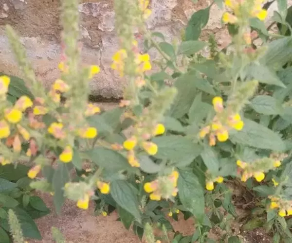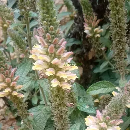 多年生粗壮、坚挺、直立、灌木状草本,高可达1米,全体被多细胞腺毛。茎圆柱形,下部木质化,多分枝。叶多,叶柄长6-12毫米,叶片卵形至卵状披针形,纸质,长2-8厘米,端急尖或渐尖,基部狭楔形,边缘具尖锯齿。花近于无梗,集成顶生稠密的穗状总状花序,长6-20厘米,仅基部有间断;苞片狭披针形,较萼稍短;花萼长5-6毫米,主脉5条明显,萼齿尖锐,钻状三角形,与萼筒等长;花冠黄色,外面带紫斑,多少被毛,花冠筒较花萼约长1倍,上唇顶端近于截形,有时有凹缺,下唇较长,有明显的褶襞,花药有长药隔,具柄;子房顶端及花柱基部被毛。蒴果长卵形,长约5-6毫米,密被棕色梗毛;种子长约0.5毫米,黄色,表面粗糙。花果期11月至次年3月。