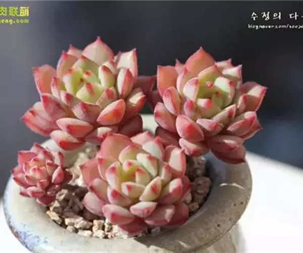 女雏是景天科石莲花属的多肉植物。特征是小巧的株形和橙粉色叶缘。极易生侧芽,…
