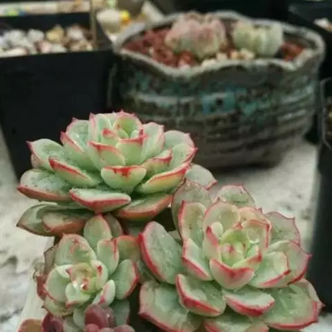 薄叶蓝鸟 叶片蓝绿色,叶尖红色,带粉,花型紧凑,非常漂亮。原产于墨西哥,现世界各地均有栽培。