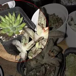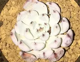 玫瑰莲的繁殖可砍头催生蘖芽,也可叶插繁殖,成功率比一般石莲花低得多,开花株花柄上的叶片最容易扦插了。