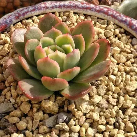 大和锦是景天科拟石莲花属的多肉植物。肉质叶排成紧密的莲座状,广卵形至散三角卵形,背面突起呈龙骨状,…
