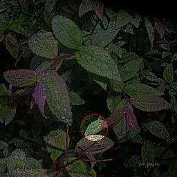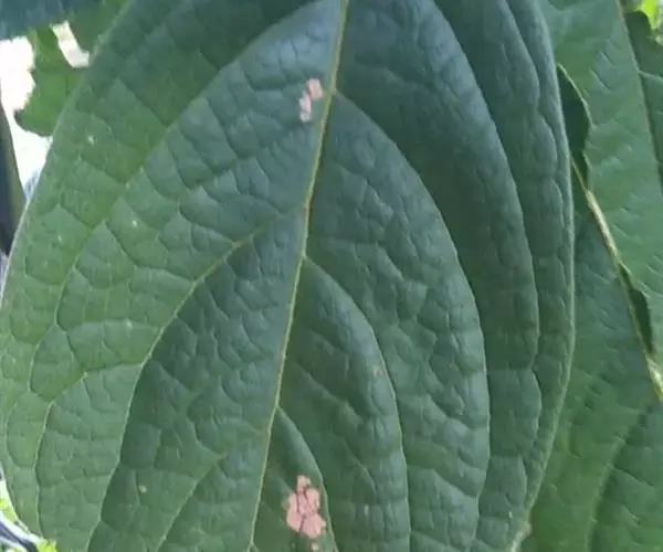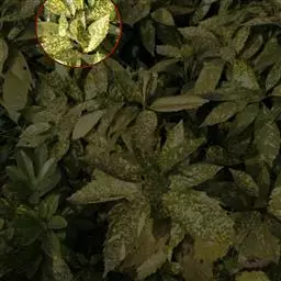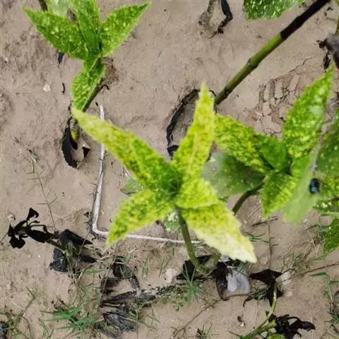 发病叶初期先出现黑褐色斑点,病斑边缘绿色,中间灰白色,有时破裂穿孔,直至叶片枯死。