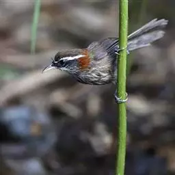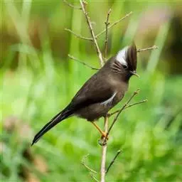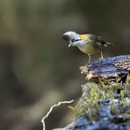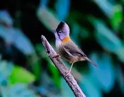 纹喉凤鹛:小型鸟类,体长13-16厘米。头顶和羽冠暗褐色或褐灰色,上体橄榄褐色,飞羽黑褐色,…