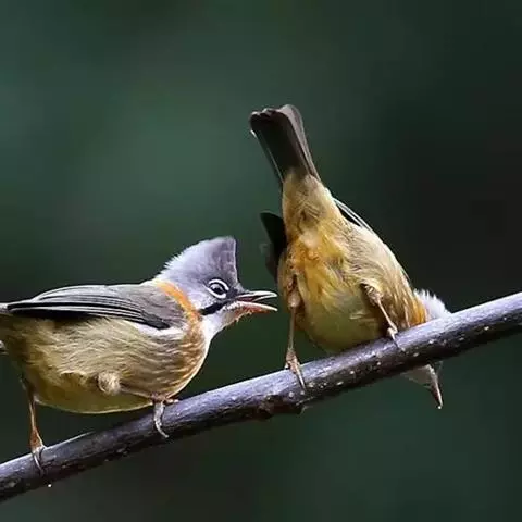 天的绣眼鸟,尤其是进入繁殖期的雄鸟,鸣唱非常频繁,而且其叫声婉转悦耳.清晨一打开笼罩,便马上会听到鸟儿的鸣唱,那是表示希望有只未配对的雌鸟能同它组成一对,建立一个家庭[这也是求爱的一种表现]..尤其是旁边在有只雄鸟[竞争对手]的话,两只鸟相互不甘示弱,啭鸣会进入高潮.用这种方法调教绣眼鸟鸣唱,是最能发挥出绣眼鸟的鸣唱水平的 .