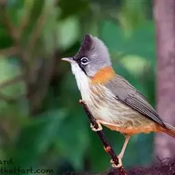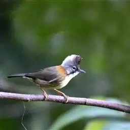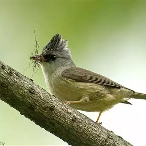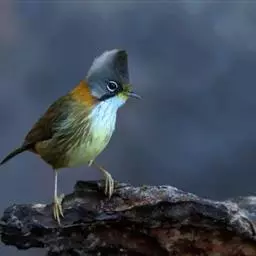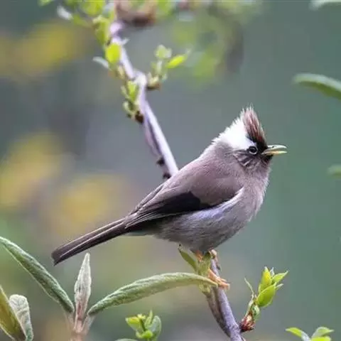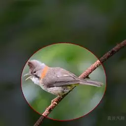 栗耳凤鹛,雌雄羽色相似。额、头顶至枕灰色,头顶有一短的不甚明显的羽冠,…