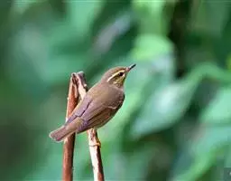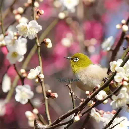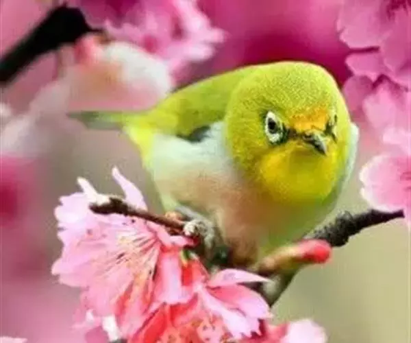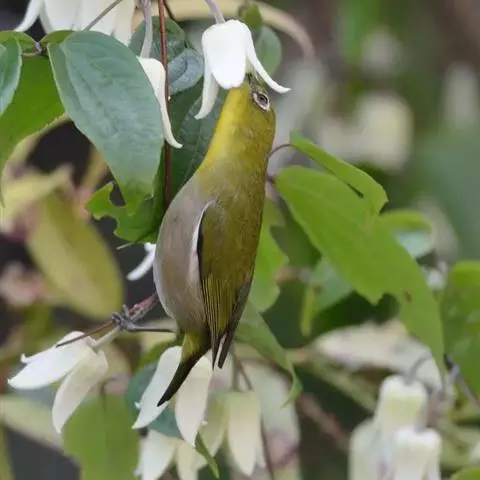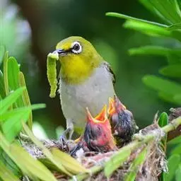 暗绿绣眼鸟(学名:Zosterops japonica)俗名绣眼儿,粉眼儿 暗绿绣眼鸟 ,白眼儿,白目眶,粉燕儿。体小而细弱,背绿色、腹白色。性活泼,在林间的树枝间敏捷地穿飞跳跃。鸣叫声似“滑儿,滑-儿,滑-儿”,婉转动听。非繁殖季节亦有集群之习性,冬季能达50~60只。主要在阔叶林营巢,巢小而精致,为吊篮式,隐藏在浓密的枝叶间,不易发现。每年3~8月间繁殖,多在南方,每窝产3~4枚卵,为纯蓝绿或纯白色,平均重1克。