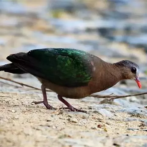 绿皇鸠体形比绿鸠类和果鸠类大,体长36-38厘米,体重508-600克。嘴也较大,嘴基扩张,…