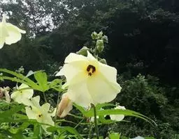 咖啡黄葵 Moench)亦称黄秋葵,是锦葵科一年生草本植物。茎圆柱形,疏生散刺。叶掌状,裂片阔至狭,…