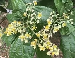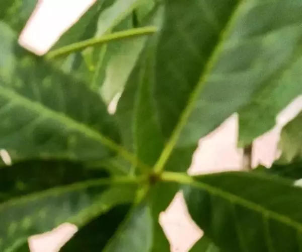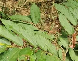 小叶5-11,具短柄或近无柄,长圆形至倒卵状长圆形,渐尖,基部楔形,全缘,上面无毛,背面及叶柄被锈色星状茸毛;中央小叶长13-24厘米,宽4.5-8厘米,外侧小叶渐小;中肋表面平坦,背面强烈隆起,侧脉16-20对,几平伸,至边缘附近连结为一圈波状集合脉,其间网脉细密,均于背面隆起;叶柄长11-15厘米。