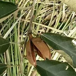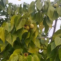 蒴果近梨形,长9-10厘米,直径4-6厘米,果皮厚,木质,几黄褐色,外面无毛,内面密被长绵毛,开裂,每室种子多数。种子大,不规则的梯状楔形,长2-2.5厘米,宽1-1.5厘米,
