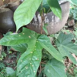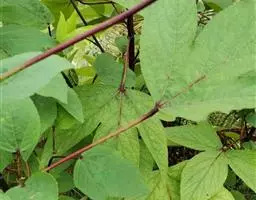 插条采集选择生长健壮、无病虫害、性状优良的当年生半木质化枝条,在阴天或无风的早晨剪取,剪留长度为6至7厘米,下切口为马蹄形,位于叶或腋芽下,切口要光滑,利于形成愈合组织。一般每个插条带2个掌叶。注意不要伤及叶片,以利光合作用。