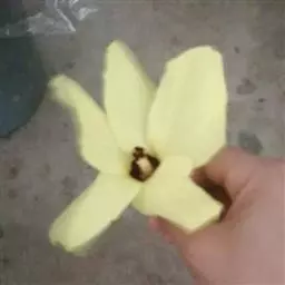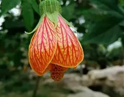 花单生枝顶叶腋;花梗粗壮,长2厘米,被黄色星状茸毛,脱落;萼杯状,近革质,高1.5厘米,直径1.3厘米,疏被星状柔毛,内面无毛,截平或具3-6枚不明显的浅齿,宿存,基部有2-3枚圆形腺体;花瓣淡黄绿色,狭披针形至线形,长达15厘米,上半部反卷;雄蕊管较短,分裂为多数雄蕊束,每束再分裂为7-10枚细长的花丝,花丝连雄蕊管长13-15厘米,下部黄色,向上变红色,花药狭线形,弧曲,长2-3毫米,横生;花柱长于雄蕊,深红色,柱头小,5浅裂。