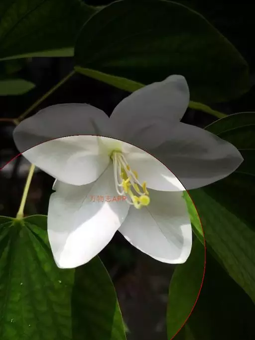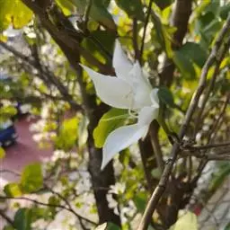 白花羊蹄甲的花数朵聚生,芳香,五杖分离花瓣,观赏花,白色。花期:春天,春天开花,先开花后才出叶,树上一片白色,相当容易辨认。